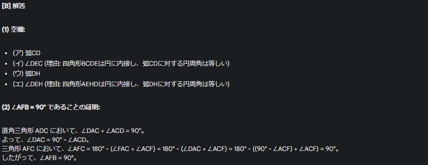また、下記にGeminiの回答を載せておりますが、Geminiの出力には推論過程が細かく記載してあり、例えば間違った考え方をして再考に至った経緯も出力されます。この記事にすべて載せるには冗長でしたので、回答をまとめるよう指示しております。